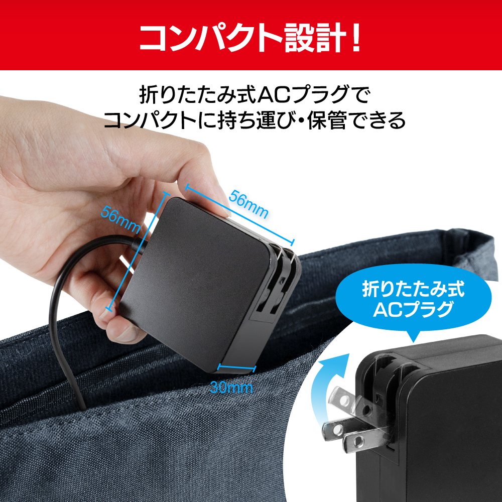 折りたたみ式ACプラグを採用しておりますので、コンパクトに収納できます。