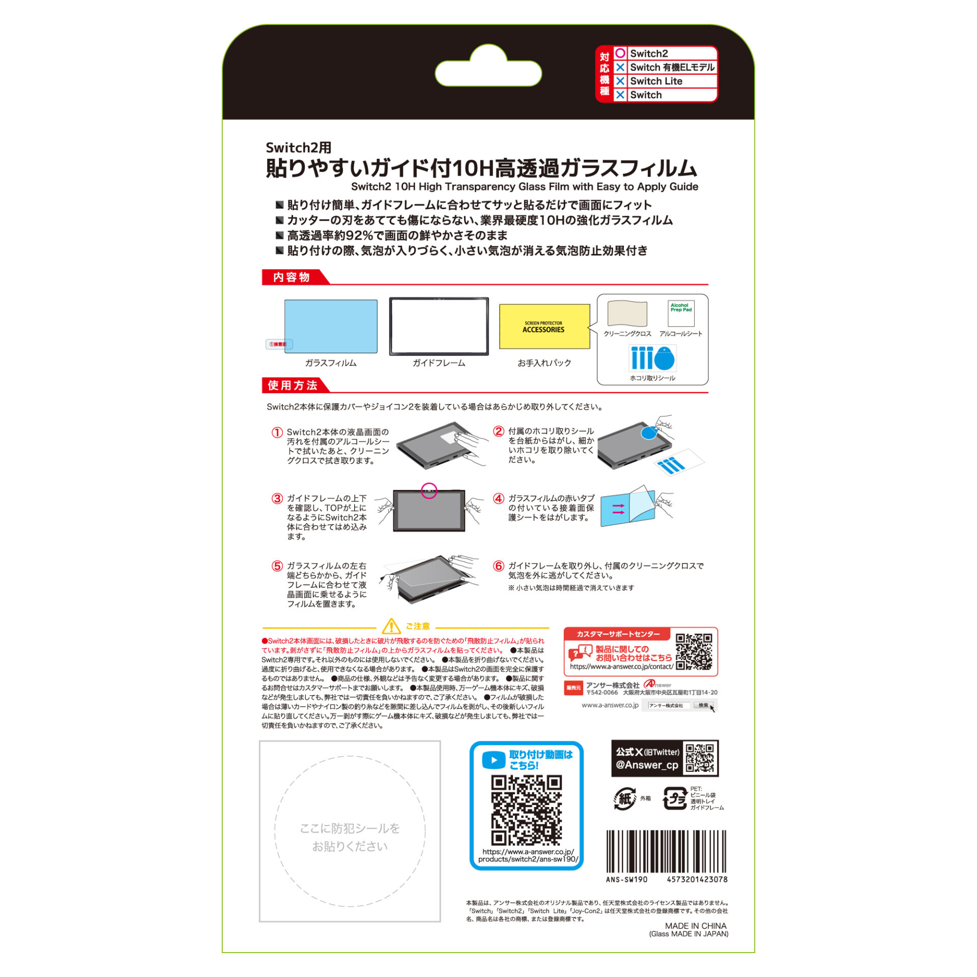 Switch2用 貼りやすいガイド付10H高透過ガラスフィルム