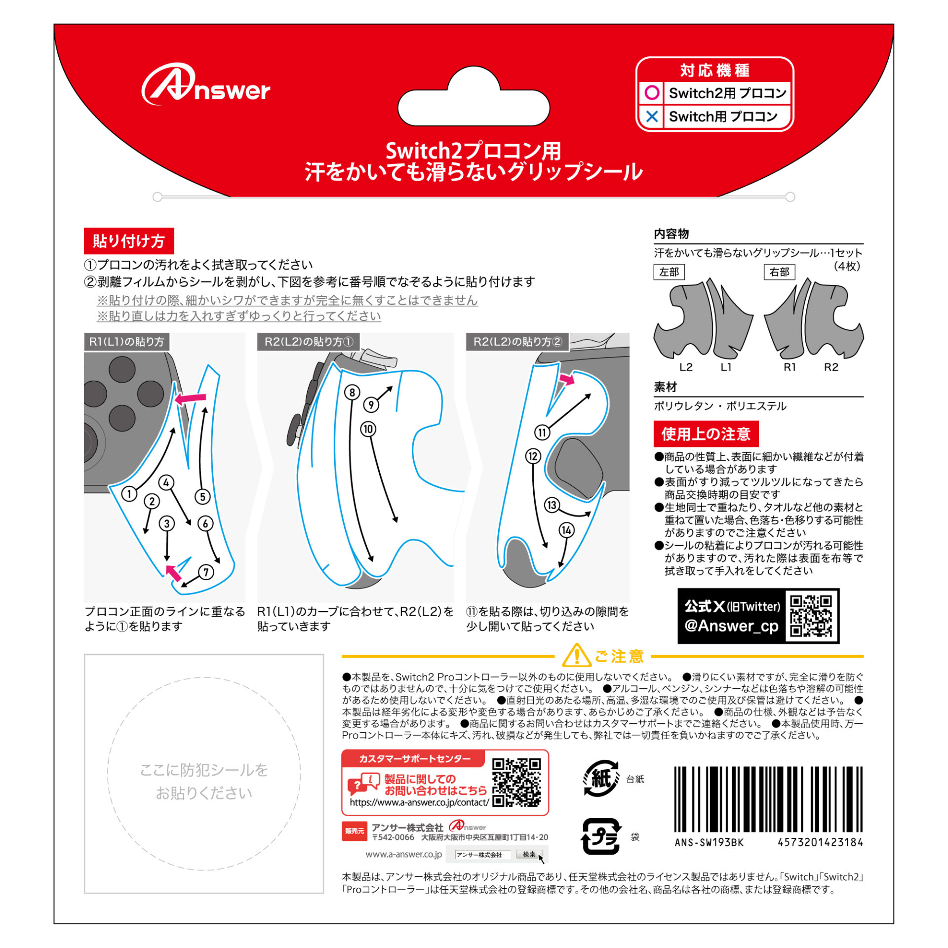 ※ 本製品は、アンサー株式会社のオリジナル商品であり、任天堂株式会社のライセンス製品ではありません。「Switch」「Switch2」「Proコントローラー」は任天堂株式会社の登録商標です。その他の会社名、商品名は各社の商標、または登録商標です。