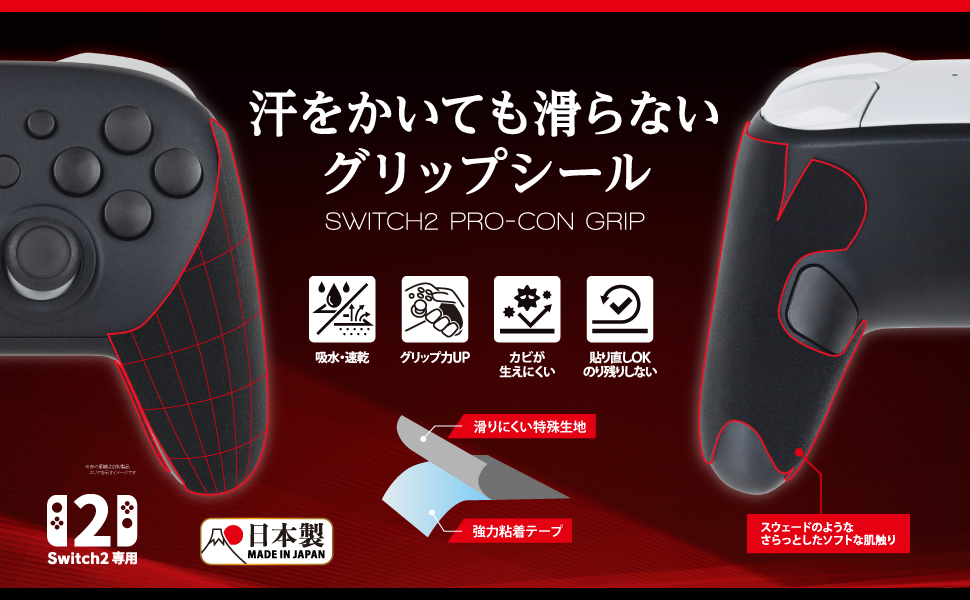 Switch2プロコン用 汗をかいても滑らないグリップシール