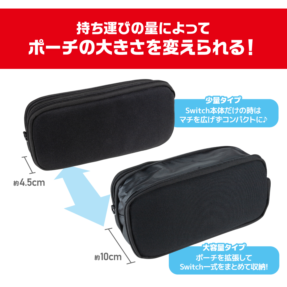 さらに、マチを広げることでドックまたは、プロコンや充電器類などを収納することが可能なおでかけポーチとしてもご利用いただけます。