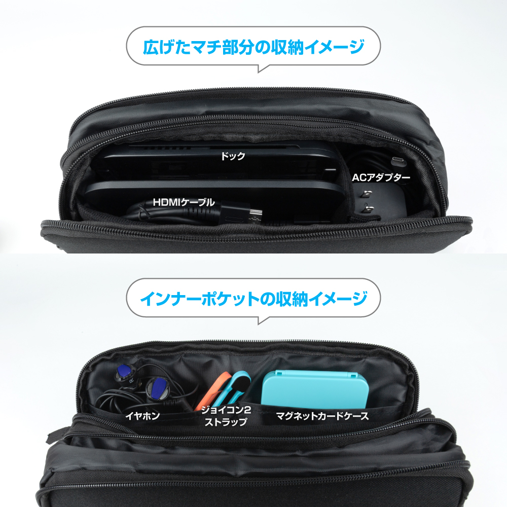 Switch・Switch有機ELのドックや充電器類の収納・持ち運びも可能です。